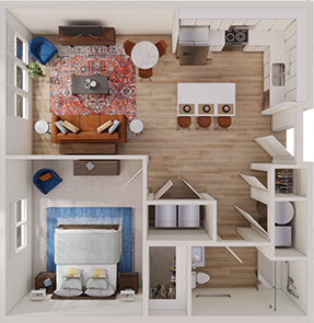 Bright and cozy, our one-bedroom apartments are perfect for those seeking a low-maintenance, inviting space. Enjoy modern features, including walk-in closets and open kitchen designs.